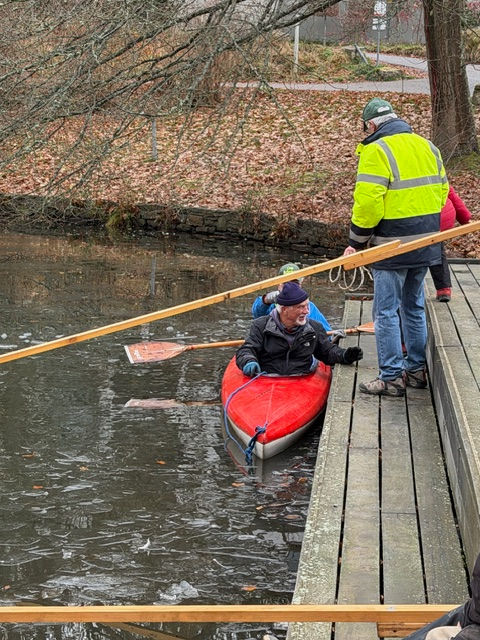 Kurz vor der Eröffnung des Bad Schwalbacher Krippenweges, das 2025 zum dritten Mal stattfindet, haben die Bänker die eingelagerte Weihnachtskrippe wieder aufgebaut und in den Weiher des Kurparks zu Wasser gelassen.